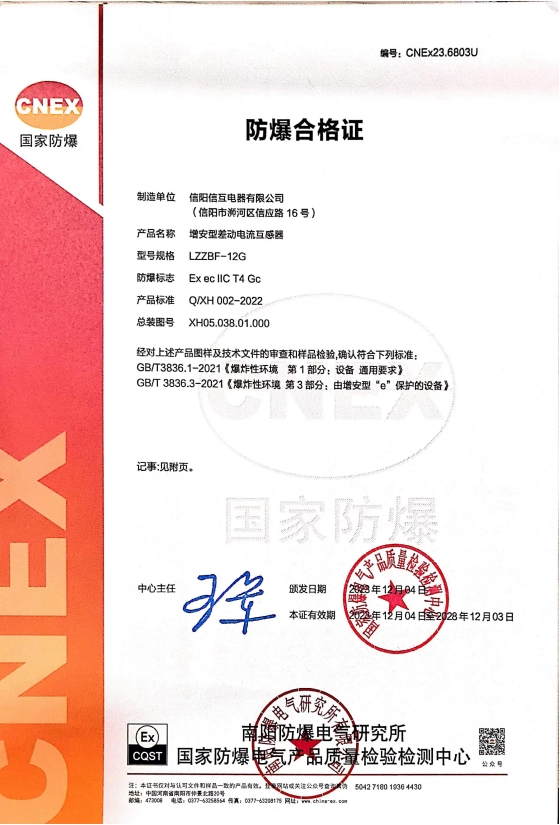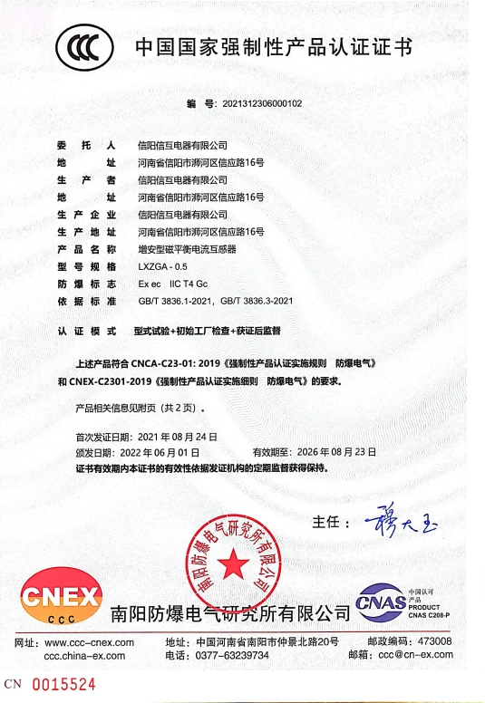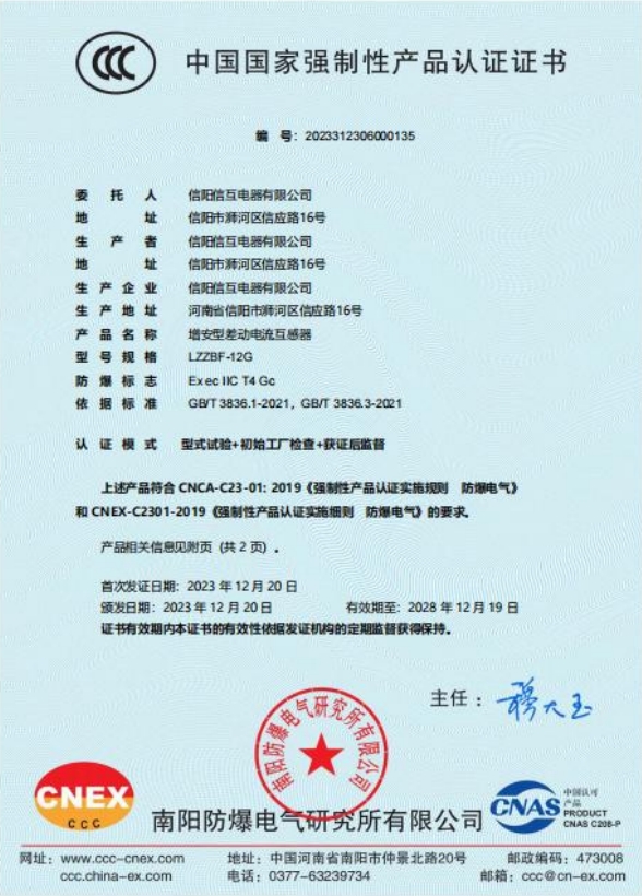 為滿足客戶大功率高壓電機(jī)差動(dòng)保護(hù)需求及適應(yīng)新的國標(biāo)和市場政策變化,經(jīng)過不懈努力和嚴(yán)格審核,我司成功取得了LZZBF-12G系列10KV增安型差動(dòng)電流互感器3C國家強(qiáng)制認(rèn)證證書!